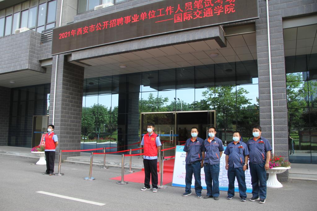 为确保本次考试工作在疫情防控常态化下安全平稳进行,后勤基建处针对本次考试人员特点,制定了“一罩一测一码一核一消”的疫情防控方案,在学校东门设置了“现场核酸监测站”及3个测温仓,在每个考场楼层设置“防疫消杀备品处”,同时落实医务人员值班。安保处安排专人对进出人员执行扫码、测温、口罩佩戴3道程序,筑牢了防疫工作第一道防线。电气工程学院、牵引动力学院、机电工程学院、国际交通学院及其他各二级院部积极配合,为考试提供了足额的标准考场和监考支持。党政办、党委宣传部、纪检监察室、计划财务处、现教中心以及团委,分别从考务用餐、环境氛围、考试监督、志愿服务等方面做了大量工作,切实履行了工作职责,为考生、考试工作提供了优质服务和强力保障。