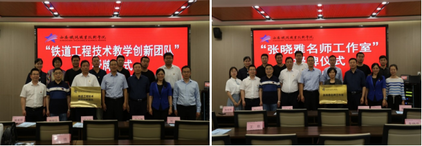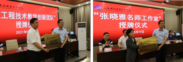 张军副处长宣读了yabo鸭脖官网〔2021〕30号《yabo鸭脖官网关于设立首批院级名师工作室的通知》和yabo鸭脖官网〔2021〕31号《yabo鸭脖官网关于命名首批院级教师教学创新团队的决定》,赵六杰分别为铁道工程技术教学创新团队和张晓雅名师工作室授牌,校区主任熊奇和张晓雅教师分别代表铁道工程技术教学创新团队和张晓雅名师工作室接牌。