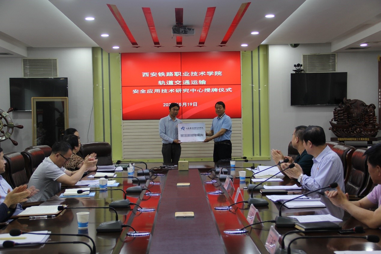 安学武希望应用技术研究中心尽快确立研究方向,加快建立工作机制,利用平台积极申报课题和项目,加强校企合作,产教融合,为学院双高建设做出贡献。他代表学校向研究中心负责人刘新强授予“轨道交通运输安全应用技术研发中心”牌匾并表示祝贺。