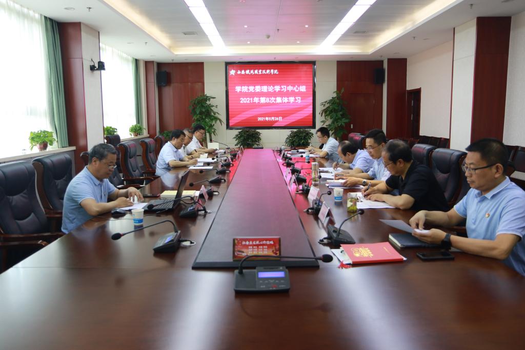5月26日,学院党委理论学习中心组开展2021年第八次集体学习,党委书记施利民主持学习会。学院领导班子成员参加学习,党政办公室、党委组织部、党委宣传部、纪检监察室负责人列席学习会。