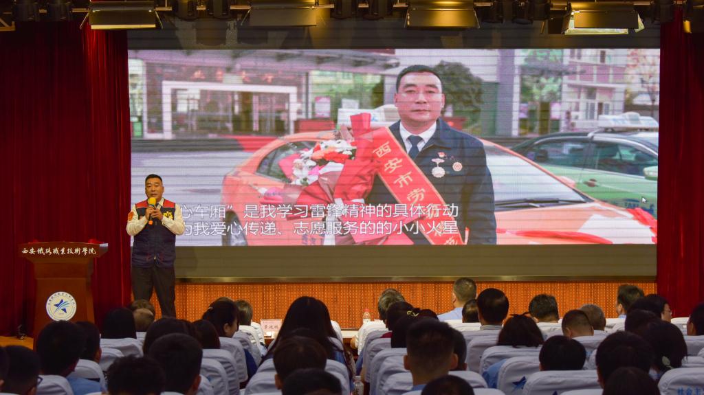 接下来,全场在主持人的带领下,以道德讲堂的形式,将西汽集团雷锋车队服务社会,献出一份爱,温暖一座城的爱心车厢善举以及抗疫期间感人的志愿服务事迹一一呈现,引起现场师生强烈反响。