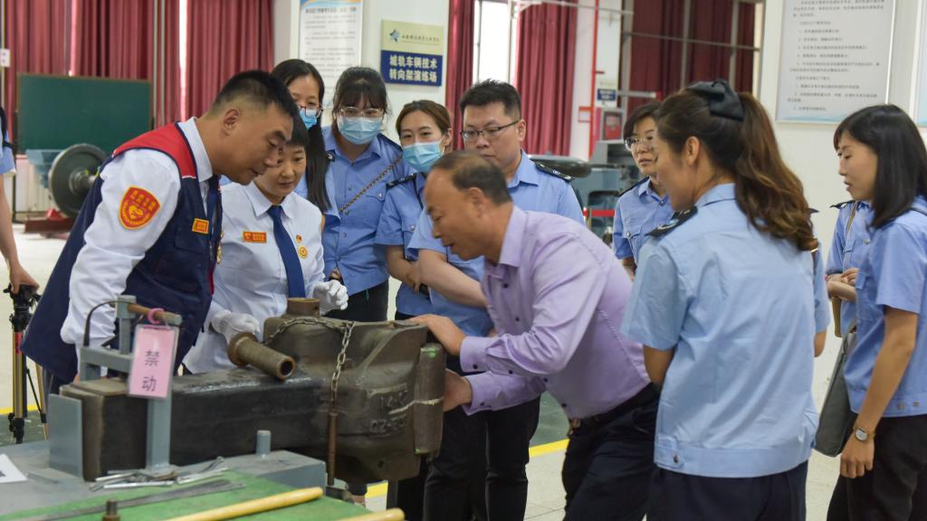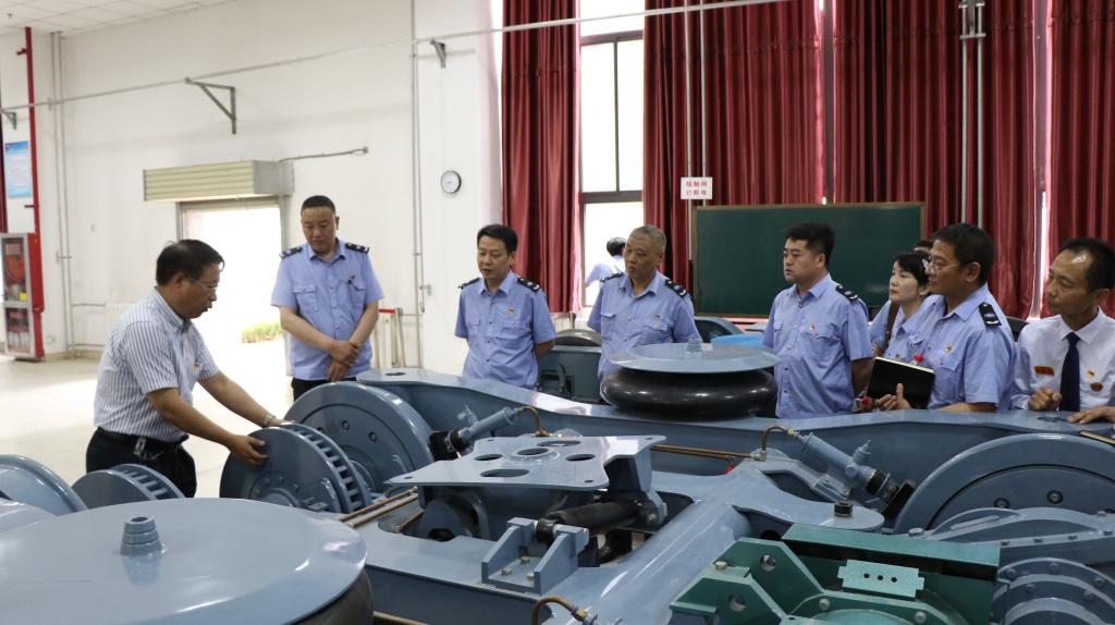 随后,西汽集团一行近距离参观了牵引动力学院磁悬浮列车实训室、动车组驾驶暨牵引传动实训中心、城轨车辆模拟驾驶实训中心等实验实训场地,牵引动力学院院长李益民详细地介绍了地铁列车模拟驾驶装置、城轨车辆牵引与制动系统等的操作。
