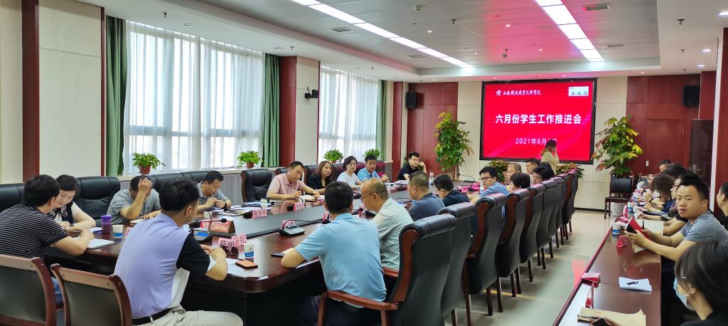 会上,党委学生工作部部长郭小莉围绕学风建设、学生党史学习、安全教育、巩固半军事化管理、学生心理健康教育、资助育人六个方面安排部署了六月份的重点工作;团委副书记李妮汇报了五月份开展的工作以及六月份围绕科技文化艺术节、学党史、“十四运”志愿服务、毕业生团组织关系转出四个方面即将开展的重点工作;招生办公室主任夏良武汇报了鸭脖2021年计划招生总数、新生学费变化、以及在各省的招生计划变化;就业指导中心主任张治平通报了截止五月底各二级学院的就业数据,汇报了围绕应届生就业和建立订单班所开展的工作;各二级学院重点汇报了2021届学生目前的就业情况和为推动就业采取的措施,交流了五月份工作中好的方法和六月份重点工作设想。
