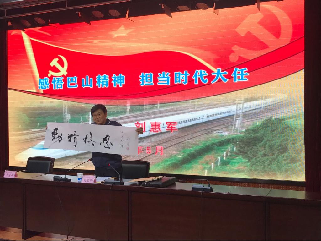 5月26日下午,党委学生工作部邀请原西安铁路局政法委副书记、巴山精神宣讲团成员刘惠军为鸭脖全体同学做了“感悟巴山精神 担当时代大任”的主题报告,师生共计200余人参与报告,报告会由党委学生工作部副部长高阿联主持。