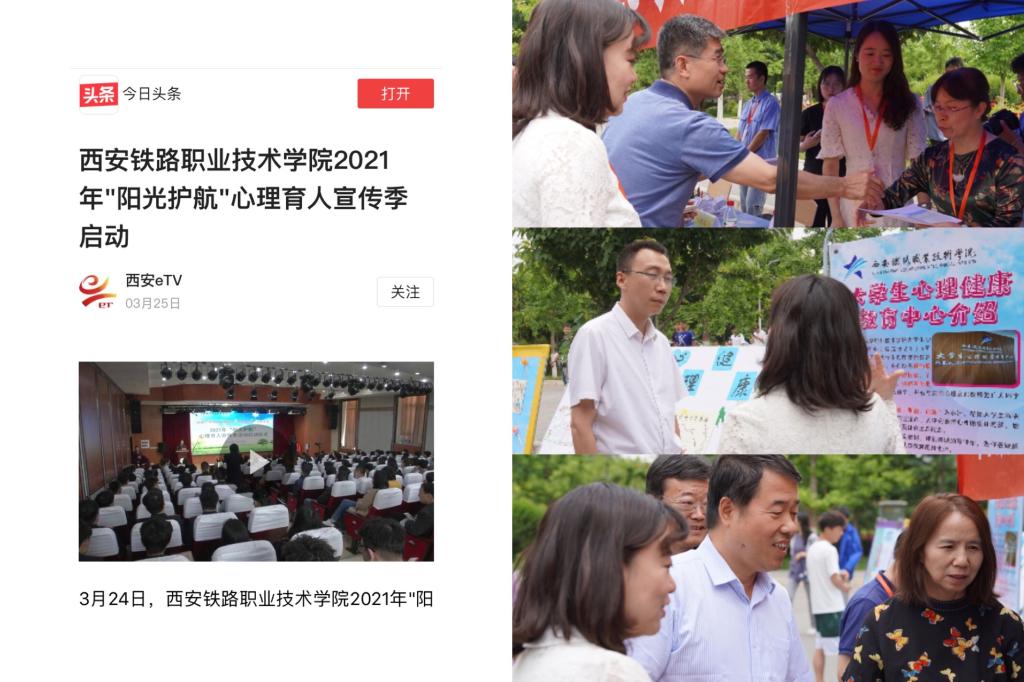 宣传季期间,学院积极举办2021年“阳光护航”心理育人宣传季启动仪式,今日头条、西安教育电视台均对学院启动仪式进行了宣传报道。在全院举办了“用爱滋润心灵 用心呵护生命”5.25大学生心理健康日户外宣传活动,积极营造全院重视心理健康的氛围。