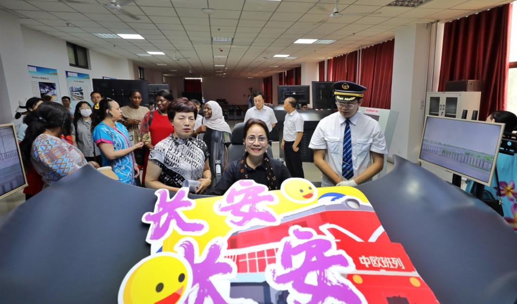 驻华大使夫人进入模拟驾驶室体验高铁动车组模拟驾驶 摄影 王晓峰
