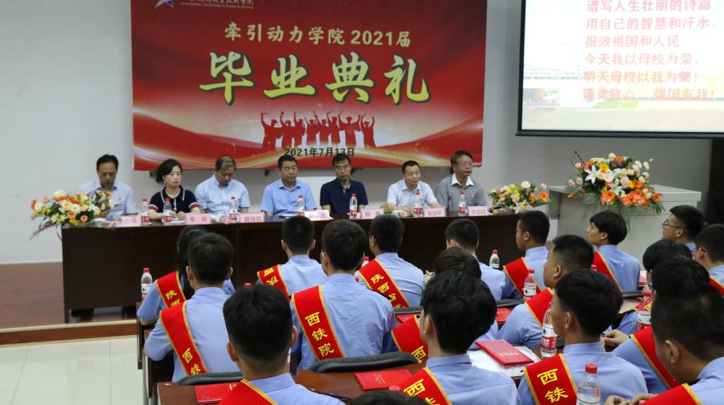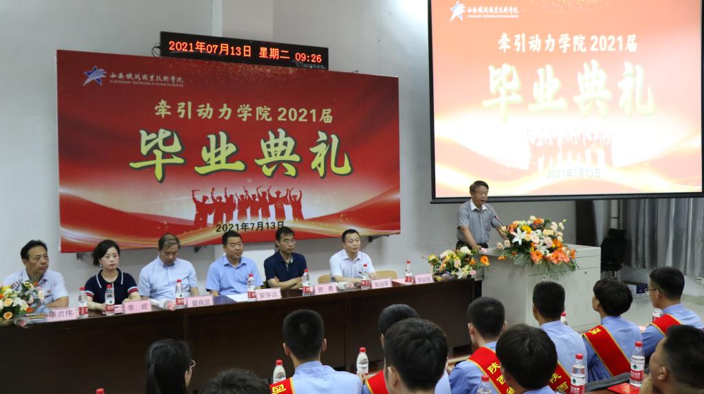 7月是收获季、毕业季,也是祝福季、启航季。相逢又告别,归帆又离岸。7月13日上午,牵引动力学院举办2021届学生毕业典礼。学院副院长安学武、教务处处长滕勇、招生办公室主任夏良武、就业指导中心主任张治平、院团委副书记李妮应邀到会祝贺,牵引动力学院院长李益民、副院长林辉,教师代表、全体辅导员、班主任及2021届毕业生代表200余人参加了本次活动。毕业典礼由牵引动力学院党总支书记李贞伟主持。