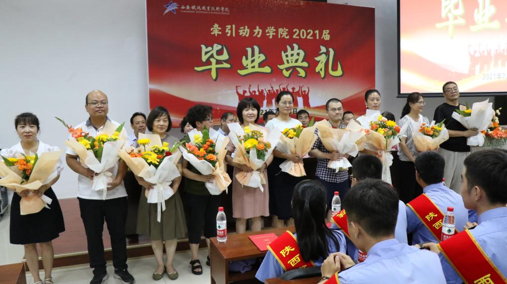 随后,李益民为优秀毕业生代表颁发毕业证书,同时优秀毕业生代表向牵引动力学院教师代表献花。