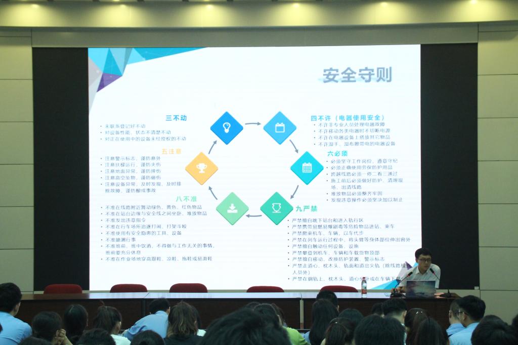 开班仪式后,进行培训环节,培训由西安地铁资深员工进行,分为安全教育与志愿服务两个模块。培训讲师从安全生产法律法规、工作环境及危险因素、疏散和现场紧急情况的处理等方面向志愿者们进行了安全教育;讲解说明了志愿服务的内容、礼仪服务规范、乘客事务处理要点等内容。通过此次培训,志愿者们对于十四运会志愿服务期间的安全知识与志愿服务相关内容有了全面的了解,来自学院的“小秦宝”们将会以最饱满的热情去迎接“各方宾客”,以自己的专业技能去解决问题,做好十四运会期间的各项志愿服务工作。