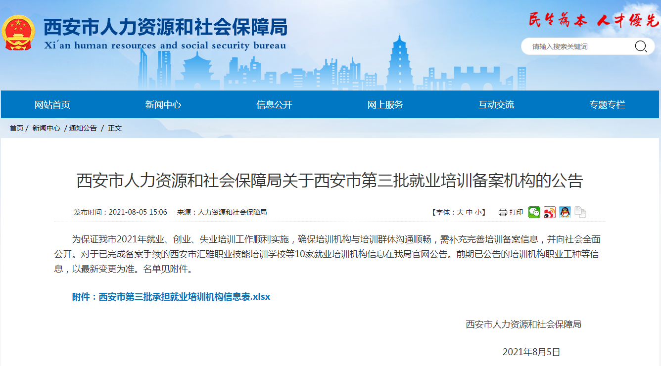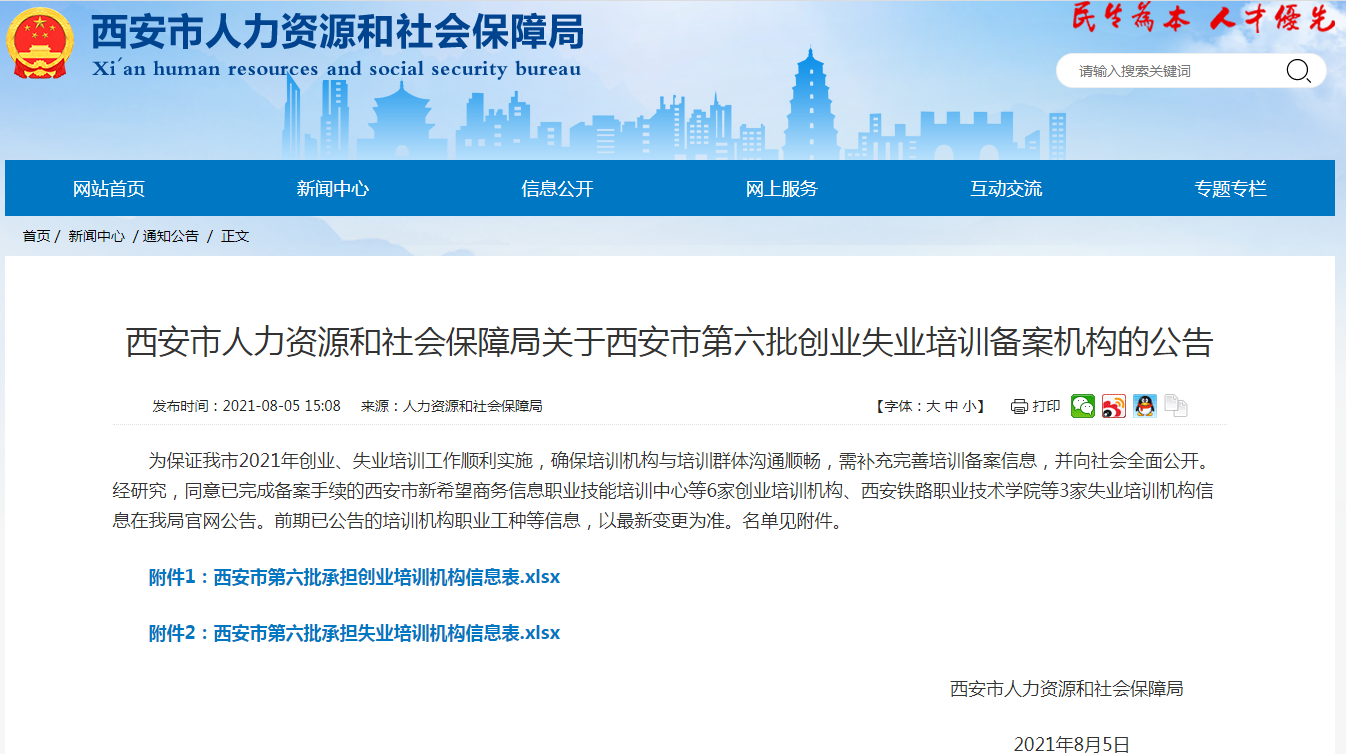 8月5日,西安市人力资源和社会保障局发布《西安市人力资源和社会保障局关于西安市第三批就业培训备案机构的公告》和《西安市人力资源和社会保障局关于西安市第六批创业失业培训备案机构的公告》,鸭脖成功获批就业、创业、失业培训机构。今后鸭脖将面向西安市各类群体开展创业培训和轨道列车司机、铁路车站客运服务员、计算机程序设计员、铁路线桥工等14个工种的就业失业培训。