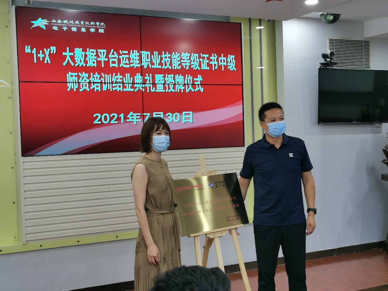 7月30日下午,“1+X”大数据平台运维职业技能等级证书中级师资培训结业典礼暨授牌仪式在自强校区第三会议室举行,新华三集团产业教育开发中心副部长饶双燕、电子信息学院院长董奇、副院长冯国良出席,结业典礼由冯国良主持。董奇在致辞中代表学院对兄弟院校教师表示热烈的欢迎,并分别介绍了鸭脖基本情况以及专业群建设、1+X试点工作开展等情况;饶双燕代表新华三集团新华三大学授予鸭脖为新华三大数据平台运维职业技能等级证书师资培训基地,并就新华三集团1+X证书、联创中心、数字工匠、教师企业实践基地等项目作了介绍,同时对鸭脖会议承办工作给予了充分肯定和衷心感谢,她希望校企能够各自发挥自身优势,推动更深层次的合作交流,共同推进职业教育的发展。
