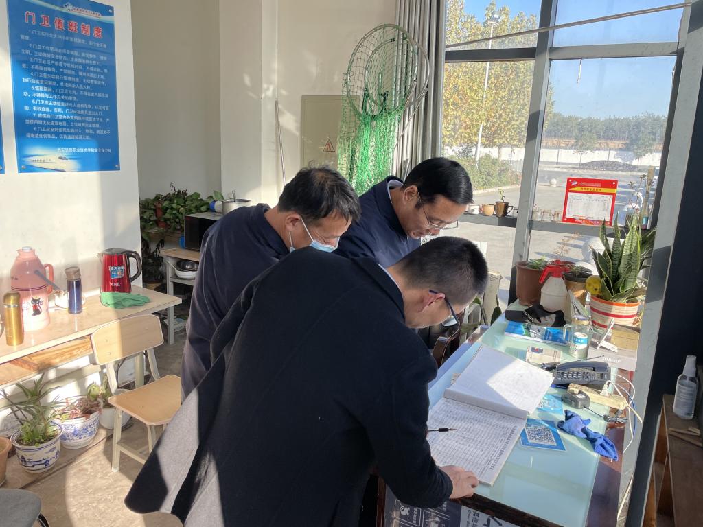为贯彻落实省委教工委、省教育厅近期校园安全稳定工作部署,由学院副院长赵六杰带队,党政办公室、党委学生工作部、后勤基建处、安全保卫处综合科主要负责人一行8人对港务校区、临潼校区开展全面安全检查,被检查校区、部门科室负责人陪同检查。