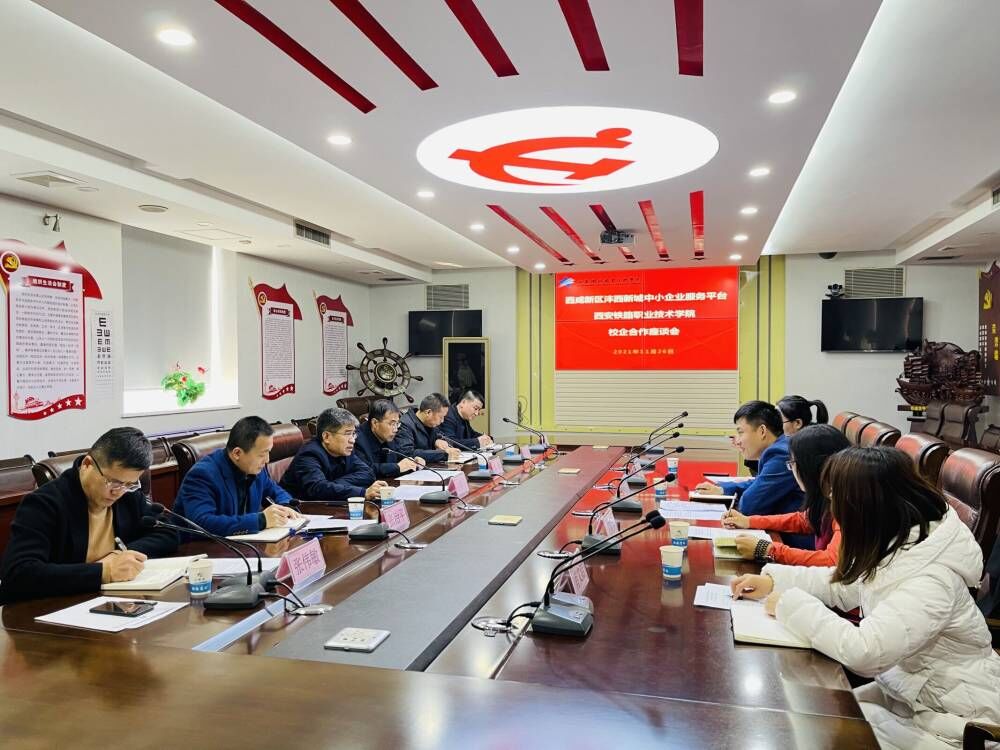 赵春平代表学院对蒲宁主任一行的到来表示热烈欢迎。并就学院的办学历程、办学规模、专业设置、校企合作等方面做了介绍。他提出,近年来,学院始终坚持走产教融合、校企合作之路,不断拓展和加强与地方政府、企业间的交流合作,为区域经济发展服务做出了应有的贡献,表示学院将不断深化教育教学改革,不断探索专业建设与企业需求、岗位融合,不断提升非轨道类专业学生的就业质量。同时,感谢西咸新区沣西新城中小企业服务平台为鸭脖大数据和云计算两个专业的学生提供的实习机会,希望在此基础上,政企校不断完善合作机制,进一步深化合作内容,丰富合作内涵,实现互惠互利,共同发展!