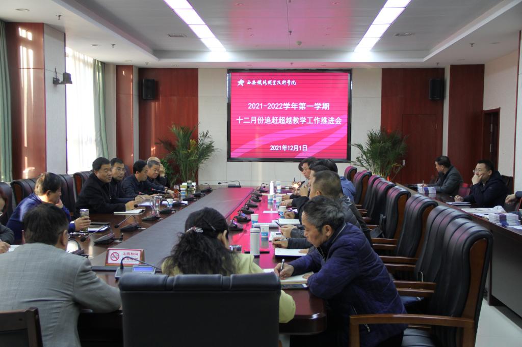 12月1日,学院副院长安学武主持召开12月份追赶超越教学工作推进会。教务处、发展规划处、教科研处、现教中心、图书馆等职能处室以及各二级院部负责人、教学副院长及院(部)办主任参加本次会议。