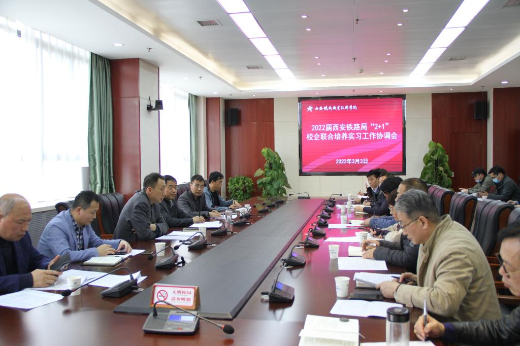 3月3日,学院2022届西安铁路局“2+1”校企联合培养实习工作协调会在港务校区五楼第三会议室召开。会议由副院长安学武主持,党委副书记、纪委书记邓轩出席会议并讲话,教务处、学生工作部、就业指导中心负责人及各二级学院院长、书记、实习工作相关人员等参加会议。