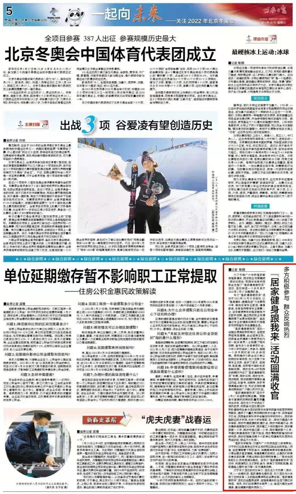 “居家健身锻炼系列”一经推出,受到全院师生一致好评,不仅服务本学院,也向社会开展技术指导服务,让更多的人参与到“强身健体、提高免疫”的活动中,仅20天时间美篇阅读量过万,读者以陕西省为主要覆盖面,并辐射到北京、广东等省市,是我省最早发布此类共享服务资源的学校之一。此外,体育教研室还积极参与西安报业传媒集团等单位主办的“居家健身跟我来”活动,先后编辑投稿16个视频,把健身知识、训练方法与更多古城市民分享。视频被西安电视台、西安晚报视频号、陕西网白鹿视频、西安发布等平台发布,还被西安新闻网本地新闻栏目等进行报道,不但获得了一些社会认可,也宣传了学院师生积极抗疫的工作。