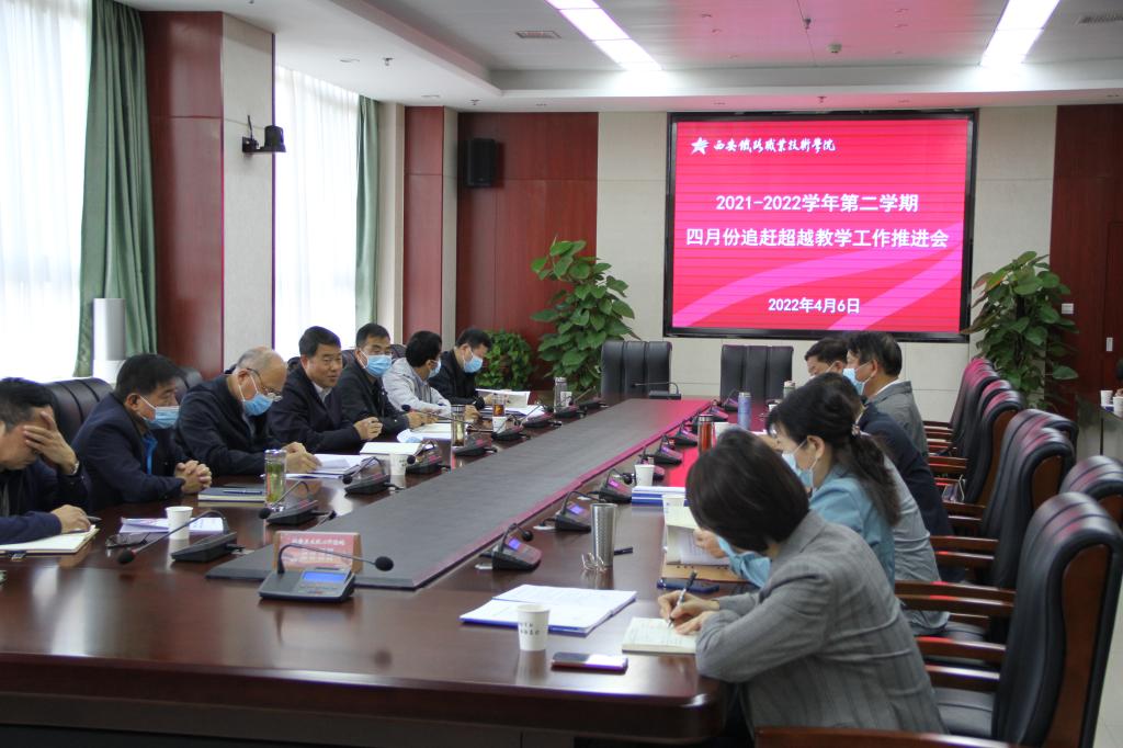 4月6日,学院副院长安学武主持召开4月份追赶超越教学工作推进会。教务处、发展规划处、教科研处、图书馆、现代教育技术中心等职能处室以及各二级院部负责人、教学副院长及院(部)办主任参加本次会议。