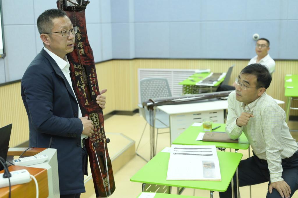 在古琴讲座的同时,还进行了精彩纷呈的陶埙演奏及制作体验。陶埙手工制作技艺传承人赵军多次在非遗技艺大赛及展览中获奖。在此次活动中,赵军老师首先向师生介绍了陶埙制作的悠久历史,然后向大家手把手演示陶埙的演奏,最后带领师生体验了陶埙制作工艺,激发了师生的极大兴趣,大家在生动愉悦的互动体验中领会到传统乐器之美。在活动的最后,许春光老师和在场的师生展开了互动,就琴的审美角度、记谱方式、和演奏技巧等问题进行答疑解惑。