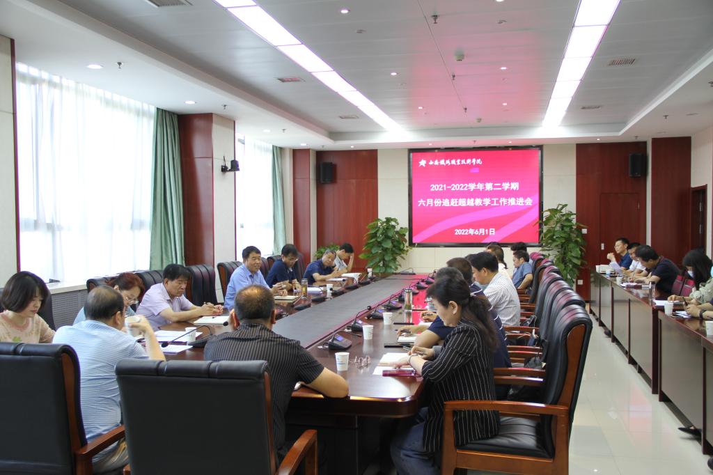 6月1日,学院副院长安学武主持召开6月份追赶超越教学工作推进会。教务处、发展规划处、教科研处、图书馆、现代教育技术中心等职能处室以及各二级院部负责人及院(部)办主任参加本次会议。