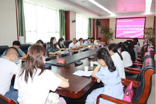 为深入学习贯彻习近平总书记在中国人民大学考察的重要讲话精神,加快推进重点马克思主义学院建设,认真总结思政课教学改革、课程建设、实践教学等方面经验,6月6日下午,马克思主义学院召开了专题理论研讨会。学院党委副书记邓耀斌、党委宣传部部长王琛及全体思政课教师参加会议,会议由马克思主义学院院长景延鹏主持。