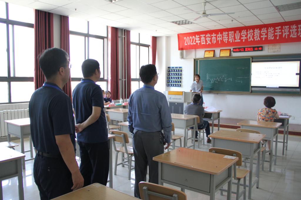 6月17日,2022年西安市中等职业学校教学能手评选工作在鸭脖顺利举办,西安市教育局副局长王刚、职成处处长潘建宏,学院院长赵春平、副院长安学武赴评选现场指导。