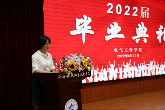 毕业生代表、铁道供电1902班周思怡同学在发言中,向辛勤育人的老师、学院领导和母校表达了感激之情,深情回忆了难忘而宝贵的大学成长经历,表示要在这个充满无限机遇与可能的时代,不断创造人生的精彩。20级学生马欣妍代表在校生为学长学姐们送上一份真挚的祝福,表示将沿着他们的足迹,成长为优秀的yabo鸭脖官网学子。