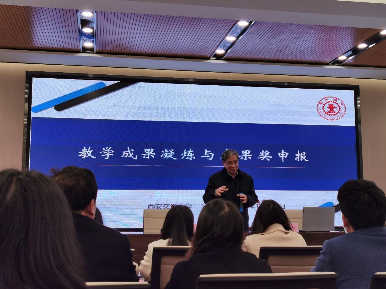 冯博琴以教学成果凝练与申报为主题,从分析成果奖关注点、凝练成果奖重难点、展现成果奖亮点三个方面展开,用诙谐幽默的语言总结出教学成果奖的各项关键要点。