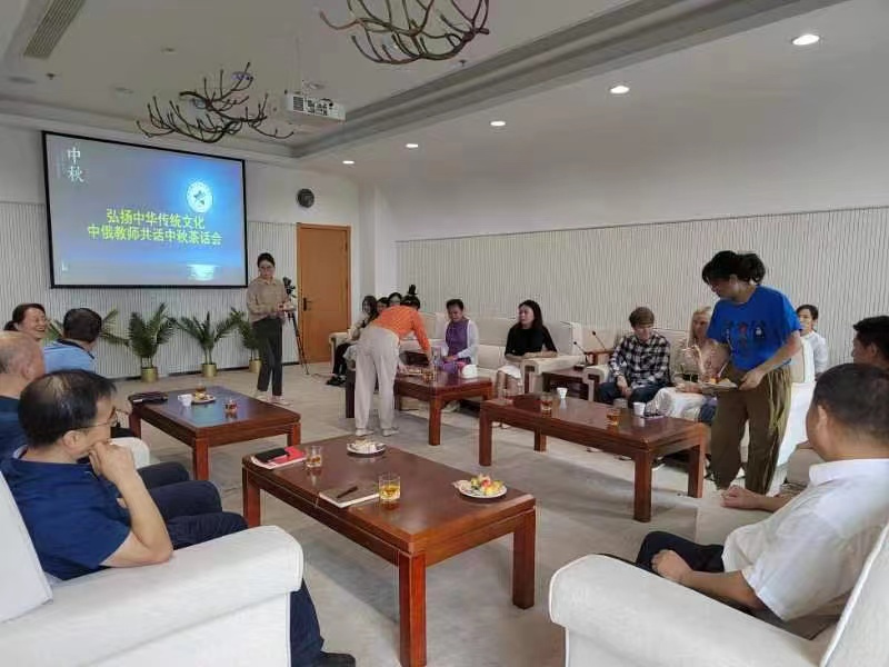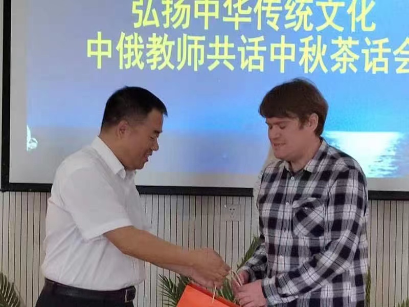 在座谈会上,安学武代表学院党委向全体教师致以节日的问候,肯定了国际交通学院中俄合作办学所取得的成就:招生人数连年增长,毕业生就业率再创新高,得到了社会的广泛关注和好评;欢迎两位俄罗斯专家来鸭脖任教,厚植中俄友谊,强化合作办学;同时表示无论外教在生活或工作中有任何困难,学院会尽全力帮助解决,并提醒外教注意疫情防护,保证自身安全。茶话会上,安学武向两位外教赠送了中秋节礼品,滕勇和马军强赠送了西安特色的纪念品,并表达了中秋祝福。两位外教在会上表达了对学校的感谢,表示在工作中会认真负责,在学生中传播中俄友谊。