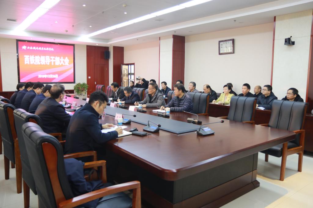 12月26日下午,学院在港务校区办公楼五楼第三会议室召开领导干部大会,宣布中共西安市委关于干部任职的决定。市委组织部常务副部长张涌、党政干部处处长张凯、党政干部处副处长王佳峰出席大会,学院院长田和平主持会议。学院领导班子成员、各部门负责人参加大会。