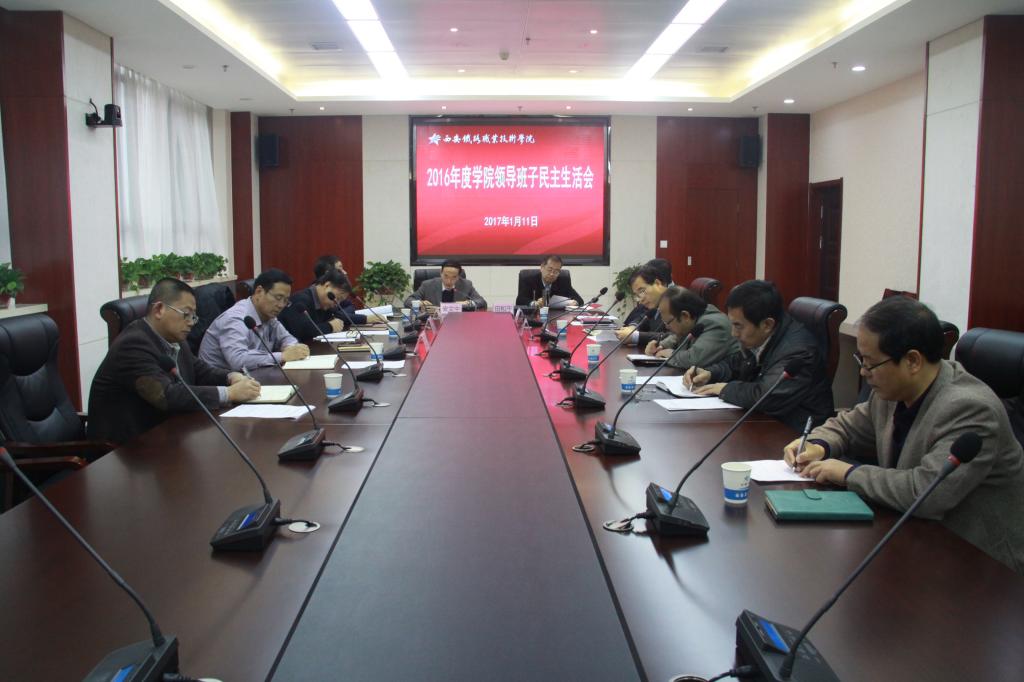 1月11日上午,院党委以学习贯彻党的十八届六中全会精神为主题,召开2016年度领导班子民主生活会。党委书记安文中主持,领导班子成员田和平、康敬远、黄家昌、邓耀斌、翁谦锁、赵六杰参加会议。
