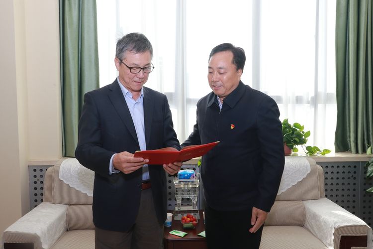 上午杨希雨教授抵达鸭脖后,学院党委书记施利民接待并与杨教授进行了亲切座谈。中宣部《时事报告》杂志社陕西教学服务中心主任王军庆、学院党委副书记邓耀斌、副院长安学武及相关处室负责人参加座谈。学院党委书记施利民向杨教授介绍了学院的办学情况、办学理念,特别是学院在为国家轨道交通培养人才方面取得了可喜成绩,以及学院在国家“一带一路”发展战略中日益发挥出重要的作用。杨希雨教授对学院取得了成就给予了高度评价,对学院今后利用自身优势,在国家高铁走出国门和服务“一带一路”倡议中如何更好的发挥作用提出了非常宝贵的建议。同时,杨教授欣然接受学院的邀请,成为学院大学生形势政策教育客座教授。施利民书记代表学院为杨希雨教授颁发了客座教授聘书,并合影留念。
