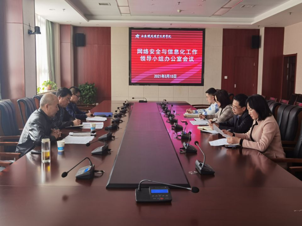 3月15日下午,学院召开网络安全与信息化工作领导小组办公室会议,副院长安学武,党政办公室、宣传部、计划财务处、现教中心负责人及相关人员参加会议。会议由现教中心主任黄小明主持。