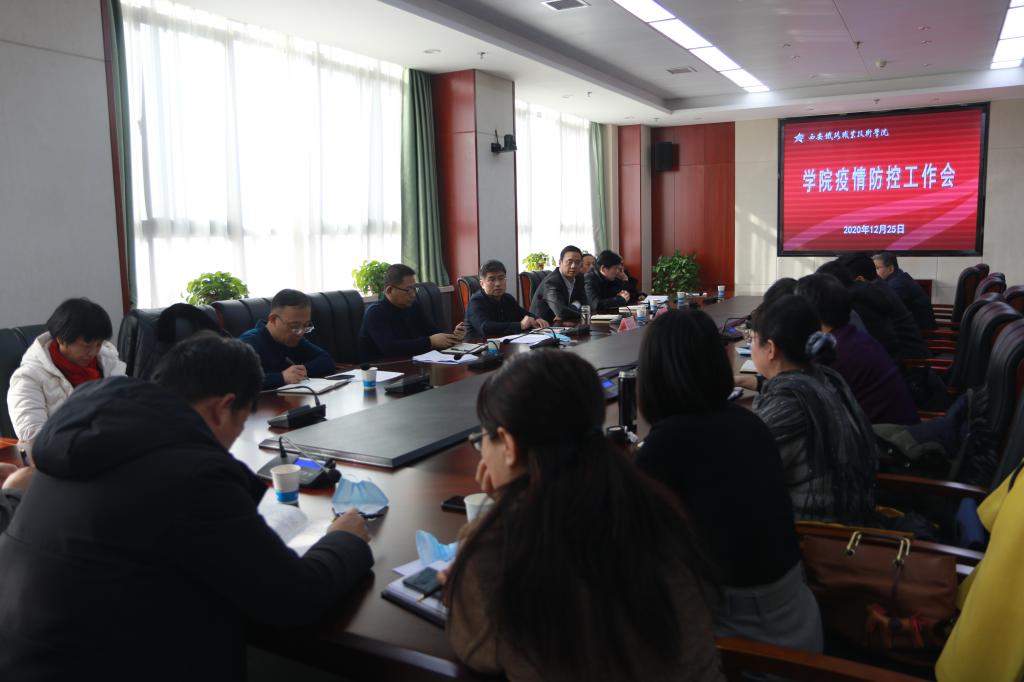 12月25日上午,学院召开疫情防控工作会议,邀请市疾控中心传染病控制二科科长孙亚辉作秋冬季校园新冠肺炎疫情及常见传染病防治工作培训,同时安排部署期末全校疫情防控工作。院长赵春平、副院长赵六杰出席,党政办、宣传部、人事处、计财处、学工办、后勤基建处、安保处、现教中心、自强管理处等部门负责人,各二级学院党总支书记,以及港务校区医务人员、保洁公司负责人参加了会议。
