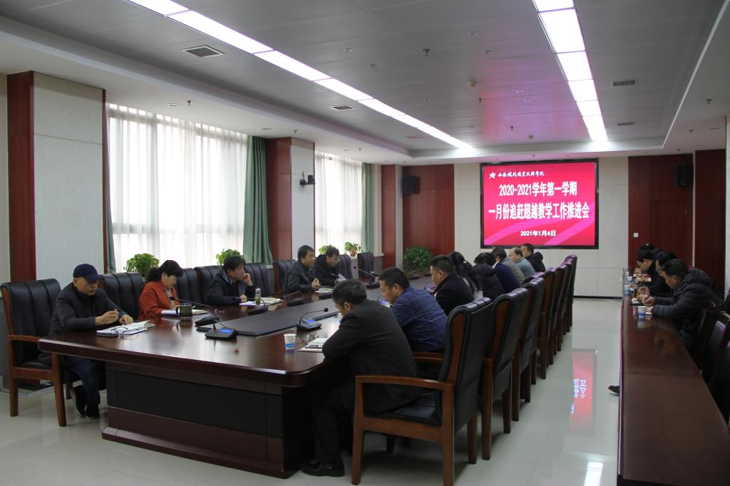 1月4日,学院副院长安学武主持召开1月份追赶超越教学工作推进会。教务处、发展规划处、教科研处、现教中心、图书馆等职能处室以及各二级院部负责人、教学副院长参会。
