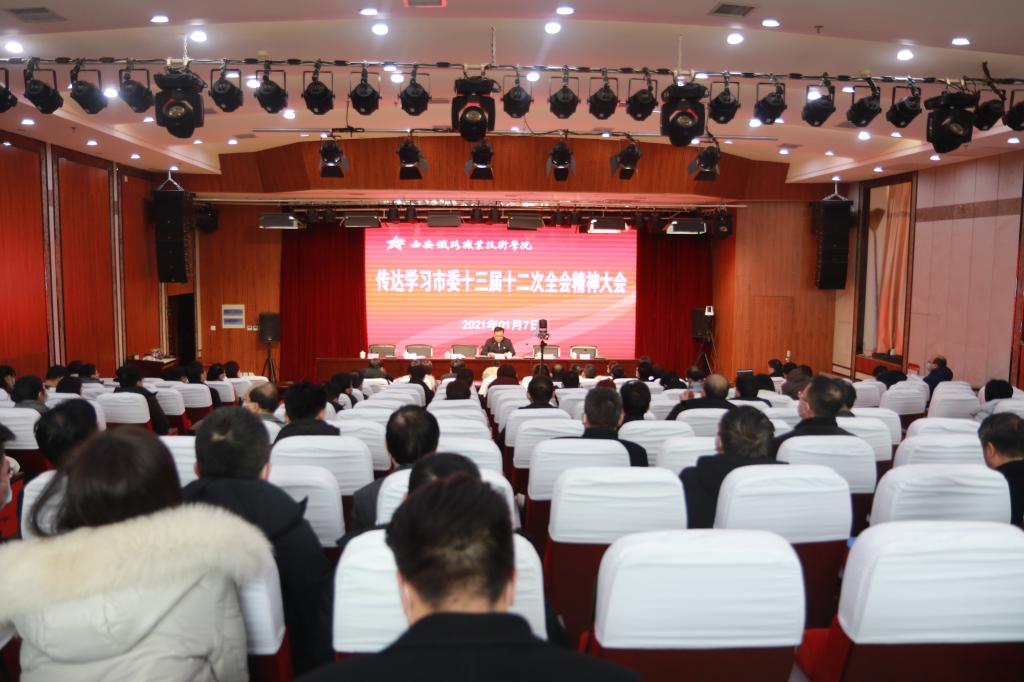 1月7日,学院党委书记施利民主持召开传达学习市委十三届十二次全会精神大会。全院处科级干部、教研室主任、骨干教师参加会议。