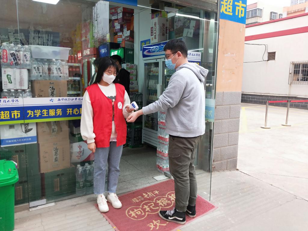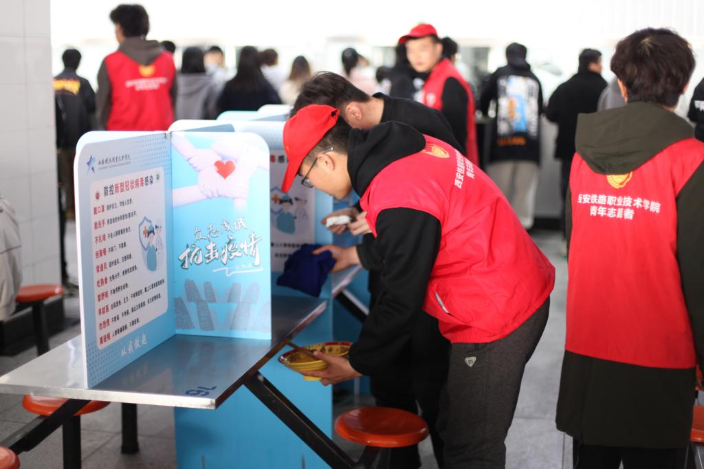 校园疫情防控志愿服务:学院青年志愿者科学、有序参与校园疫情防控志愿服务,协助做好学生日常体温检测、学生健康情况记录、校园学生用餐、购物秩序引导维护等工作。在线上线下讲述抗疫故事、学习抗疫英雄、弘扬抗疫精神、宣传官方权威信息,引导同学们理性认识疫情、克服松劲心态、坚定必胜信心、科学做好防护。