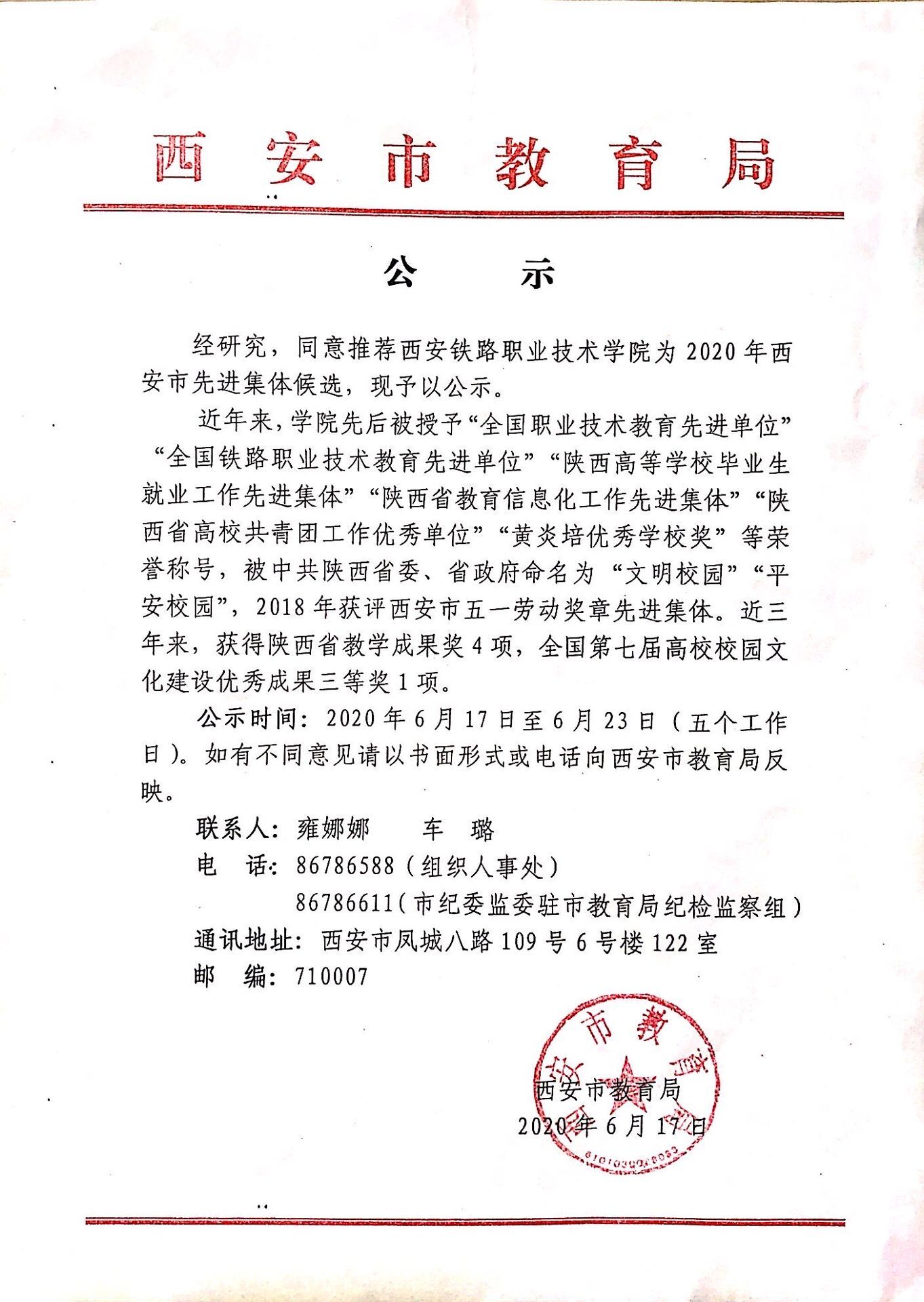 关于市教育局同意推荐鸭脖为2020年西安市先进集体候选的公示