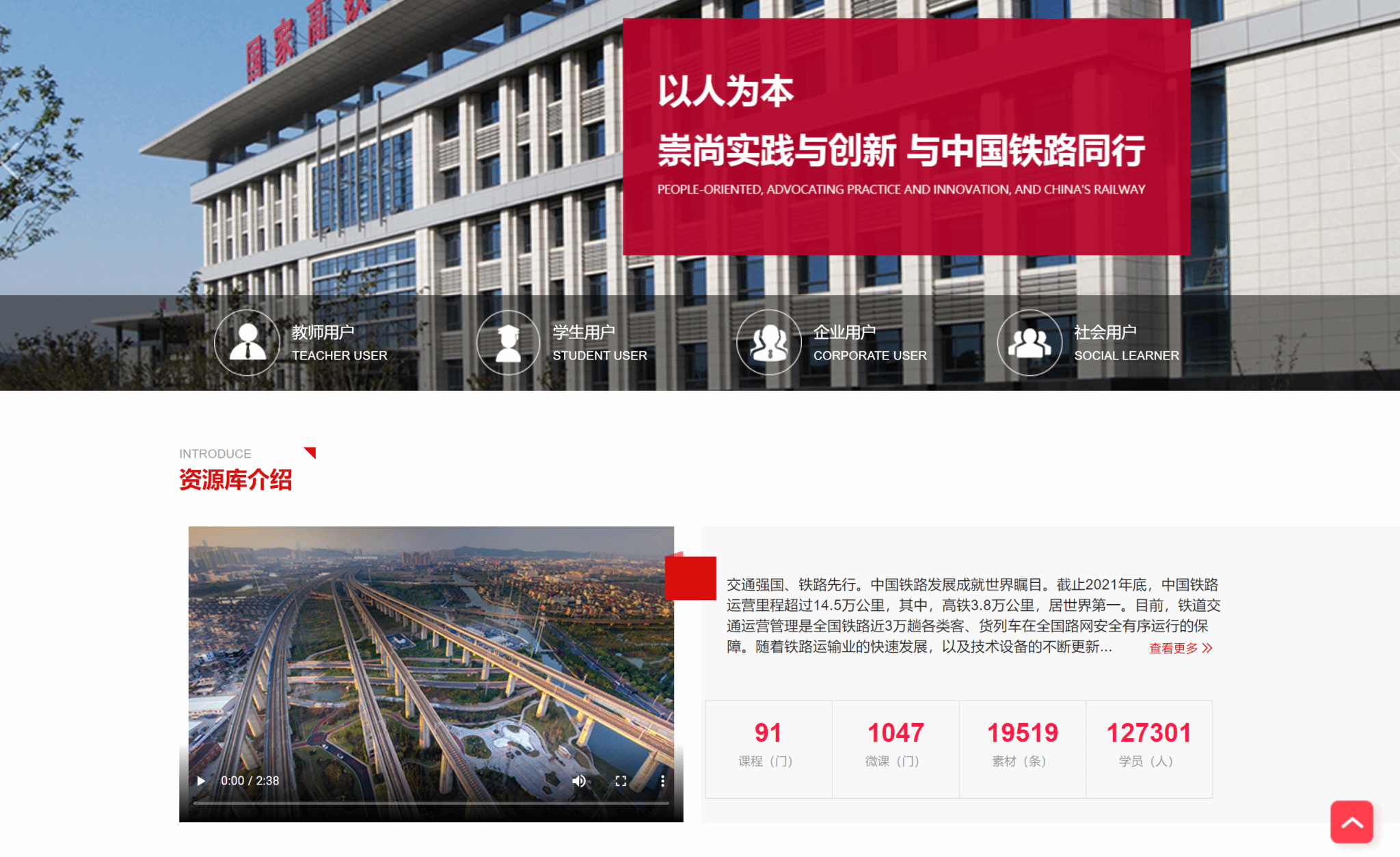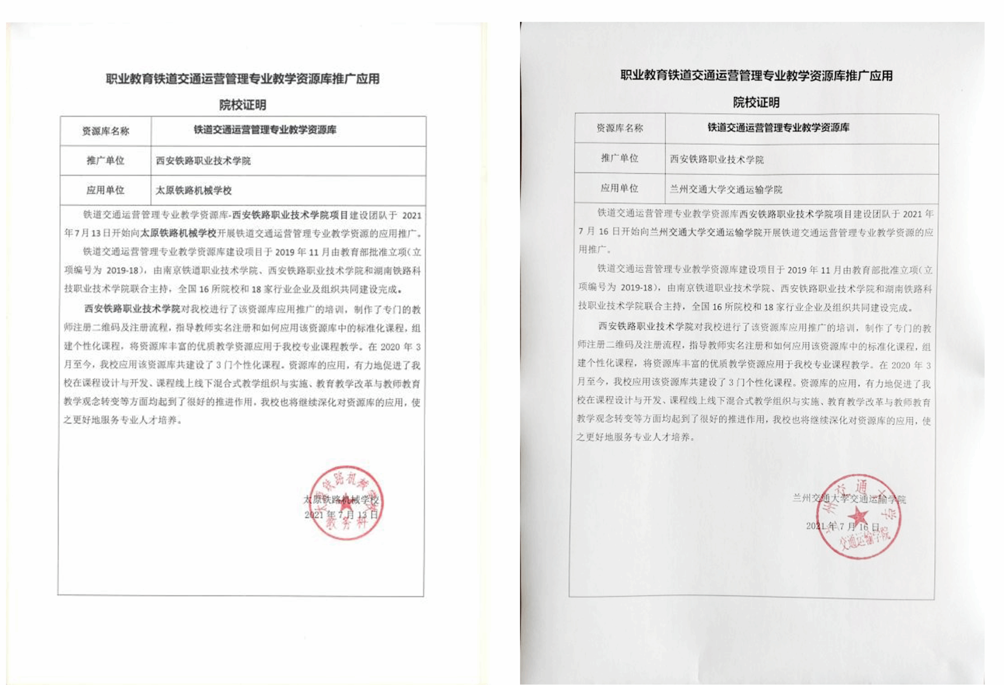 经过3年建设应用,2022年12月,鸭脖与南京铁道职业技术学院、湖南铁路科技职业技术学院主持的,联合全国18所培养铁路运输行业技术技能型人才的高职院校、20余家铁路运输企业等单位共建,在全国铁道职业教育教学指导委员、中国职业技术教育学会智能轨道交通专业委员会的支持下,铁道交通运营管理专业国家级专业教学资源库顺利通过教育部验收。