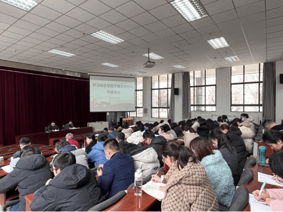 为进一步贯彻落实学院干部大会精神,推动学院“重点突破”、“强基提质”项目建设,明确2023年工作思路和各项任务,2月22日,机电工程学院在阶梯教室召开学习传达学院干部大会精神专题会议,学院全体教职工参加会议。
