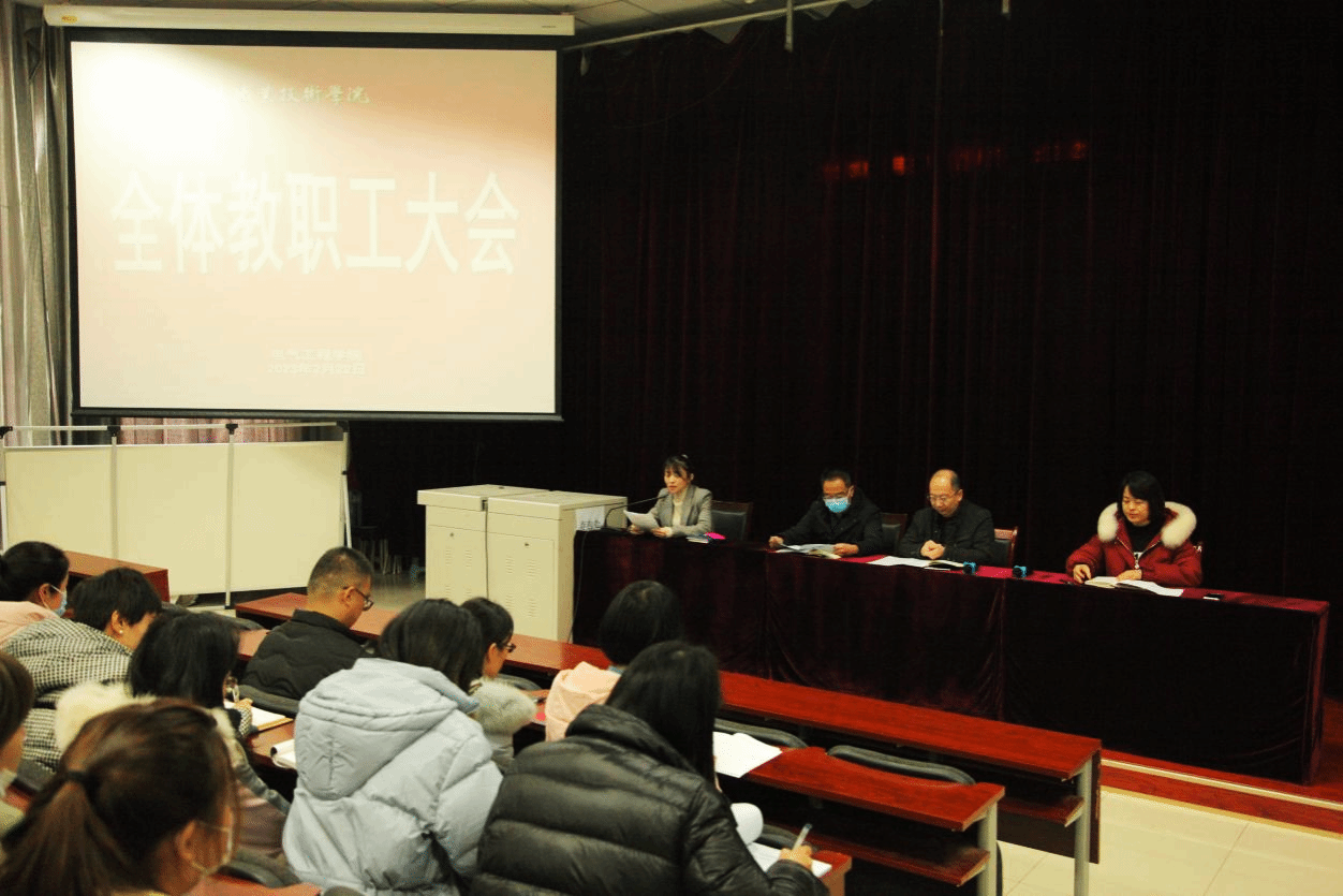 2月22日下午,电气工程学院召开2023年春季学期教职工大会,学院领导班子成员及全体教职工参会,会议由办公室主任董燕主持。