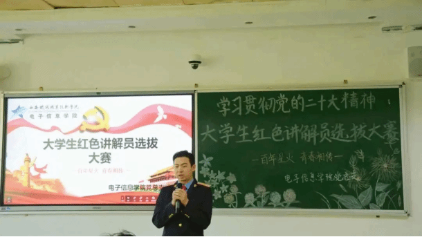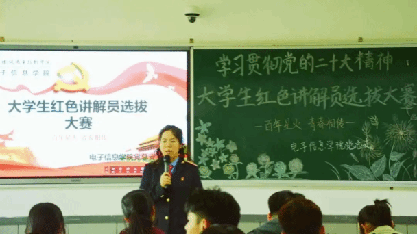 为深入贯彻落实党的二十大精神,讲好红色故事,传承红色精神,发挥大学生红色讲解团队伍示范带头作用,引导大学生树立正确的世界观、人生观、价值观。3月13日下午,电子信息学院在自强校区教学楼307教室开展了以“百年星火 青春相传”为主题的红色讲解员选拔大赛,本次活动由电子信息学院大学生红色讲解团团长陈玉颖主持,此次选拔目的在于,在大学生中积极弘扬党的革命传统和文化,强化国家认同和爱国情怀,通过讲好革命先辈的奋斗历史,来热情讴歌党的光辉业绩。