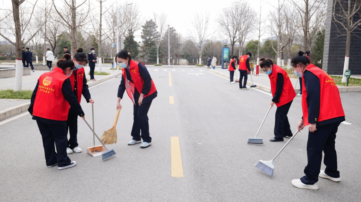 义务劳动奉献爱心 践行雷锋精神。为进一步学习和弘扬雷锋精神,牵引动力学院团总支积极组织学生参加了校园义务劳动,同学们个个不怕苦、不怕累、任劳任怨。本次活动美化了校园环境,使得绿意焕新,也展现出了牵引学子乐于奉献的精神风貌。