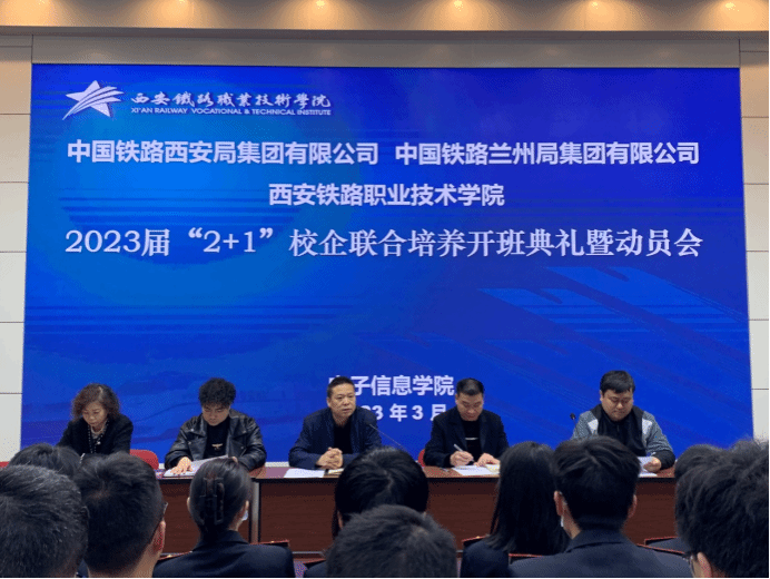 根据学校关于对西安局、兰州集团预签约学生开展“2+1”校企联合培养工作的文件精神,电子信息学院于2023年3月20日在自强校区阶梯教室召开了中国铁路西安局、兰州局、乌鲁木齐局集团有限公司“2+1” 校企联合培养开班典礼暨动员会。电子信息学院院长董奇,副院长冯国良、学工办主任薛明、相关授课教师、班主任及学员共同参加大会。会议由柴葳崴主持。