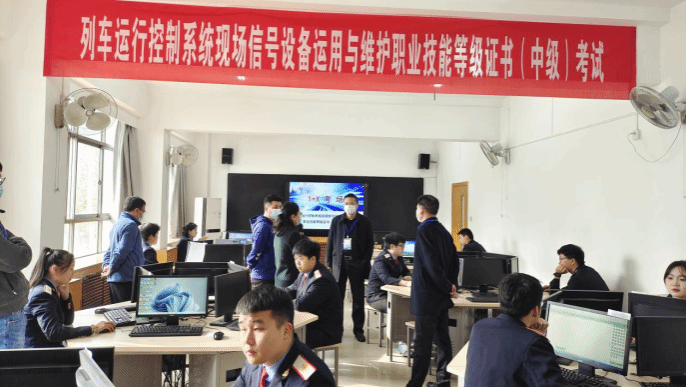 本次报考中级考核方式分为理论考试和实操考核两部分。理论考试通过专业考试系统实现考试内容统一下发和评判;实操考试分为软件操作和硬件测量两种形式。内容涵盖作业规程考核、道岔巡检、信号机巡检、电源屏巡检、列控设备巡检等5个模块,全面考核了学生的理论水平和实作能力。