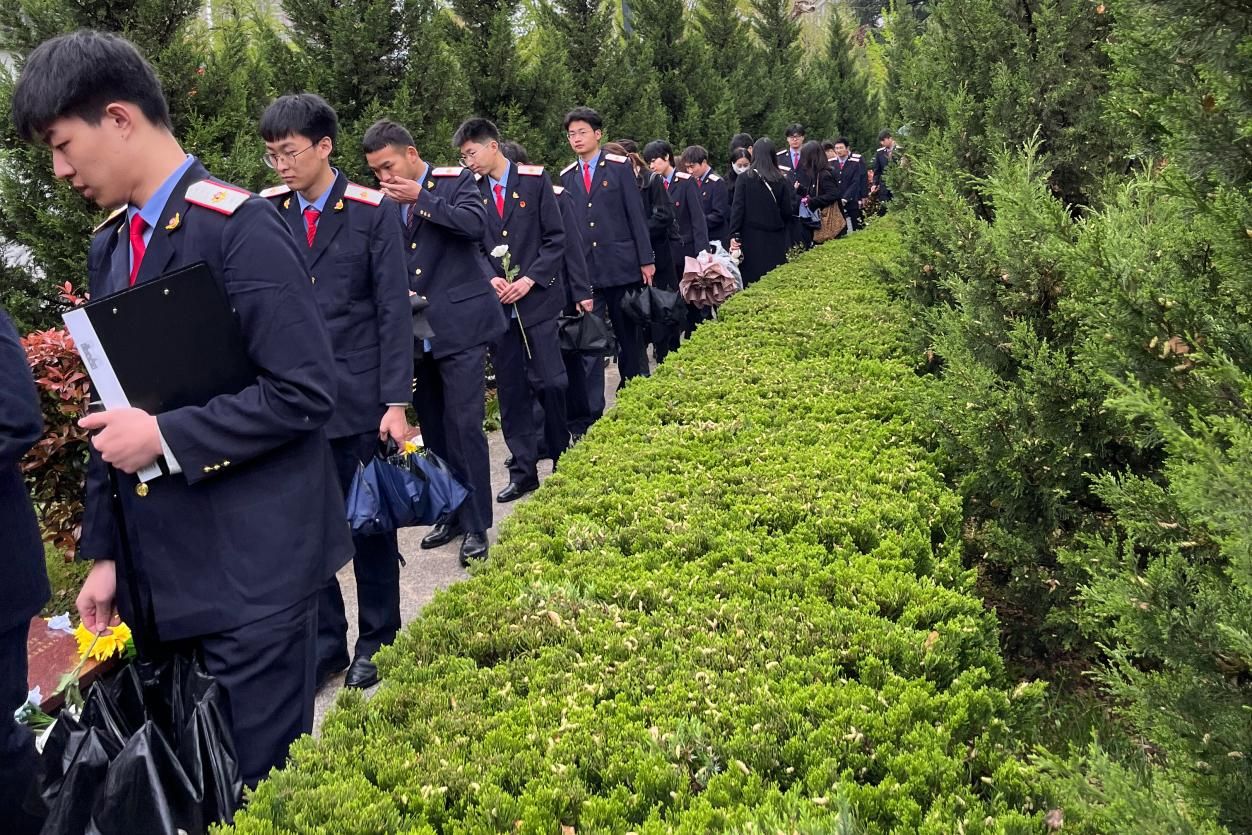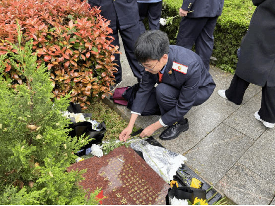 活动最后一项,全体师生进入陵园,依次敬献鲜花,并俯身于烈士墓碑前,怀着崇敬的心情,认真、仔细地擦洗着烈士墓碑,以此表达对革命先烈们的哀思和敬仰之情。