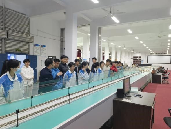 交通运输学院党总支书记王秀丽对师生们的到来致以热烈的欢迎,并介绍了此次开展铁路研学体验活动的意义。在样板支部党员老师的带领下,同学们参观了国家级生产性实训基地——铁道交通运营管理综合性实训基地,交通运输学院副院长、国家级样板支部书记刘新强向师生们详细讲解了实训中心的设备概况、用途以及真实的高铁运输场景,进一步普及了我国高速铁路运输的相关知识。