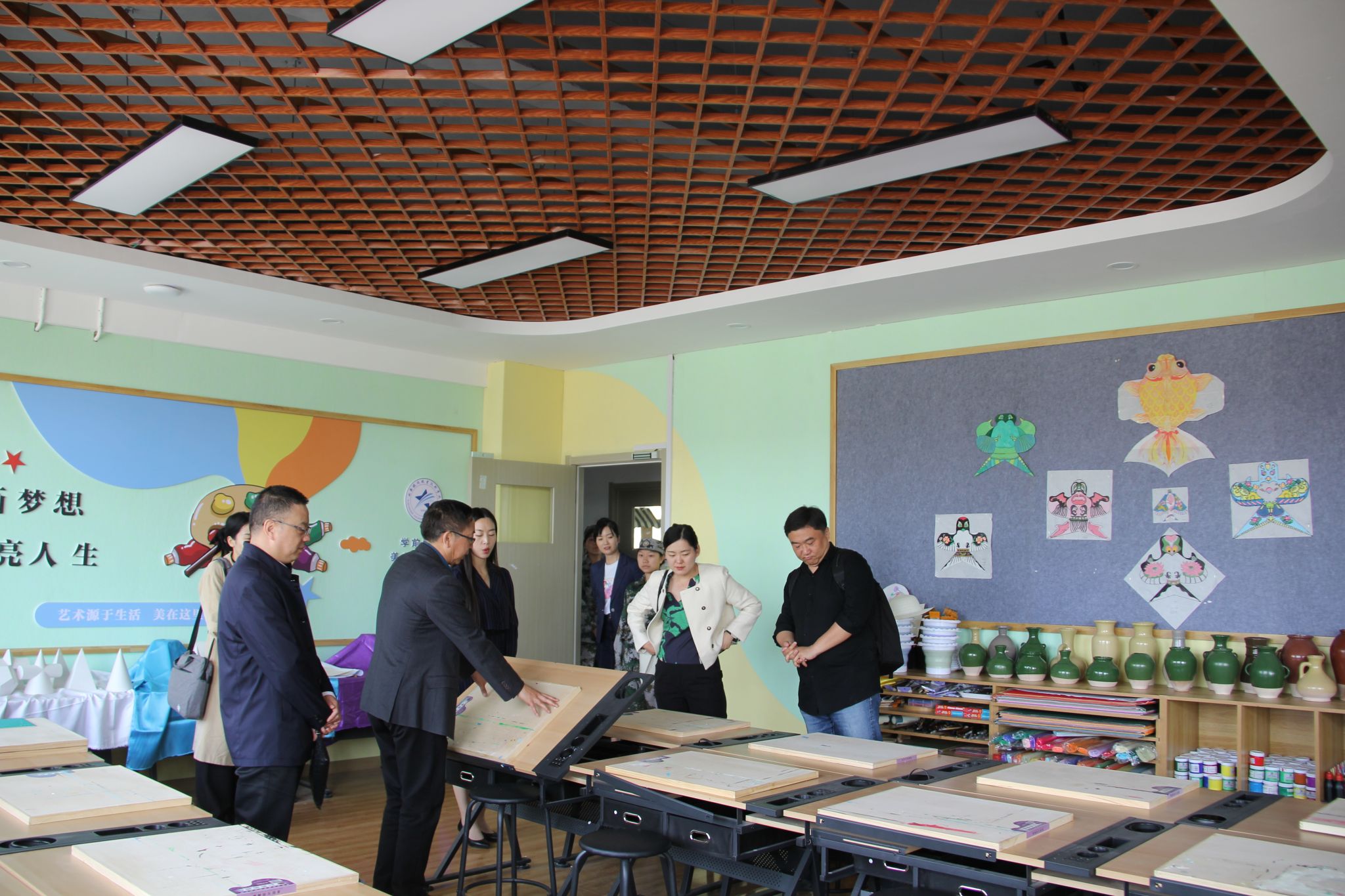 会后,孙明魁带领刘斌立副总裁一行参观了学前教育专业实训室,讲解了实训室建设思路和规划。刘斌立副总裁对鸭脖学前教育专业实训室建设的先进性和智慧化给予了高度评价。
