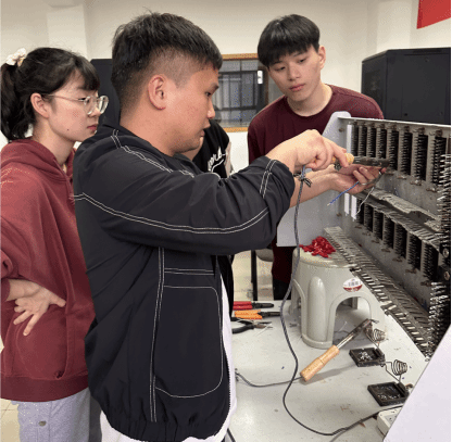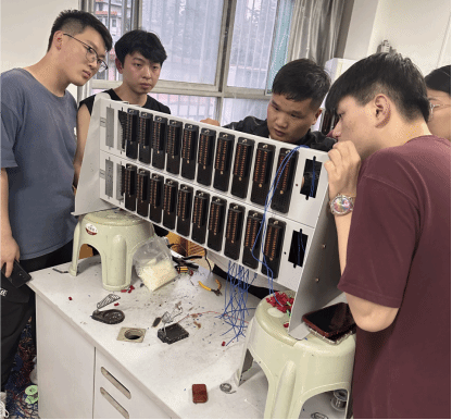 为检验焊接结果,董幸杰还利用实训室现有条件搭建了简易导通测试装置。当听到同学们导通实验成功的欢呼声时,董幸杰为同学们伸出了大拇指。最后,他还和大家分享了自己参加技能大赛的过程与经验,鼓励大家要相信自己,只有经历了风雨才能见到彩虹。备赛学生受益匪浅,深受鼓舞,表示要继续刻苦训练,弘扬工匠精神,争取在国赛中取得优异成绩。
