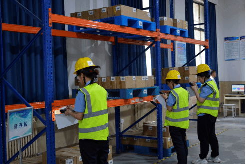 下午13点,线下实操考核在智慧物流实训中心进行,学生通过手持终端单独完成入库、理货、搬运、整理、上架、下架、出库等多项物流作业。