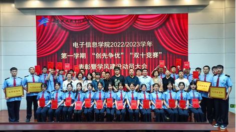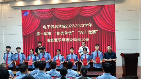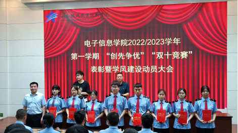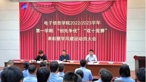 6月20日下午,电子信息学院在自强校区阶梯教室召开2022-2023学年第一学期“创先争优”“双十学习竞赛”表彰大会暨本学期期末学风建设动员大会。电子信息学院院长董奇、副院长冯国良、全体辅导员、班主任和学生代表共计200余人参加大会。大会由学工办主任薛明主持。